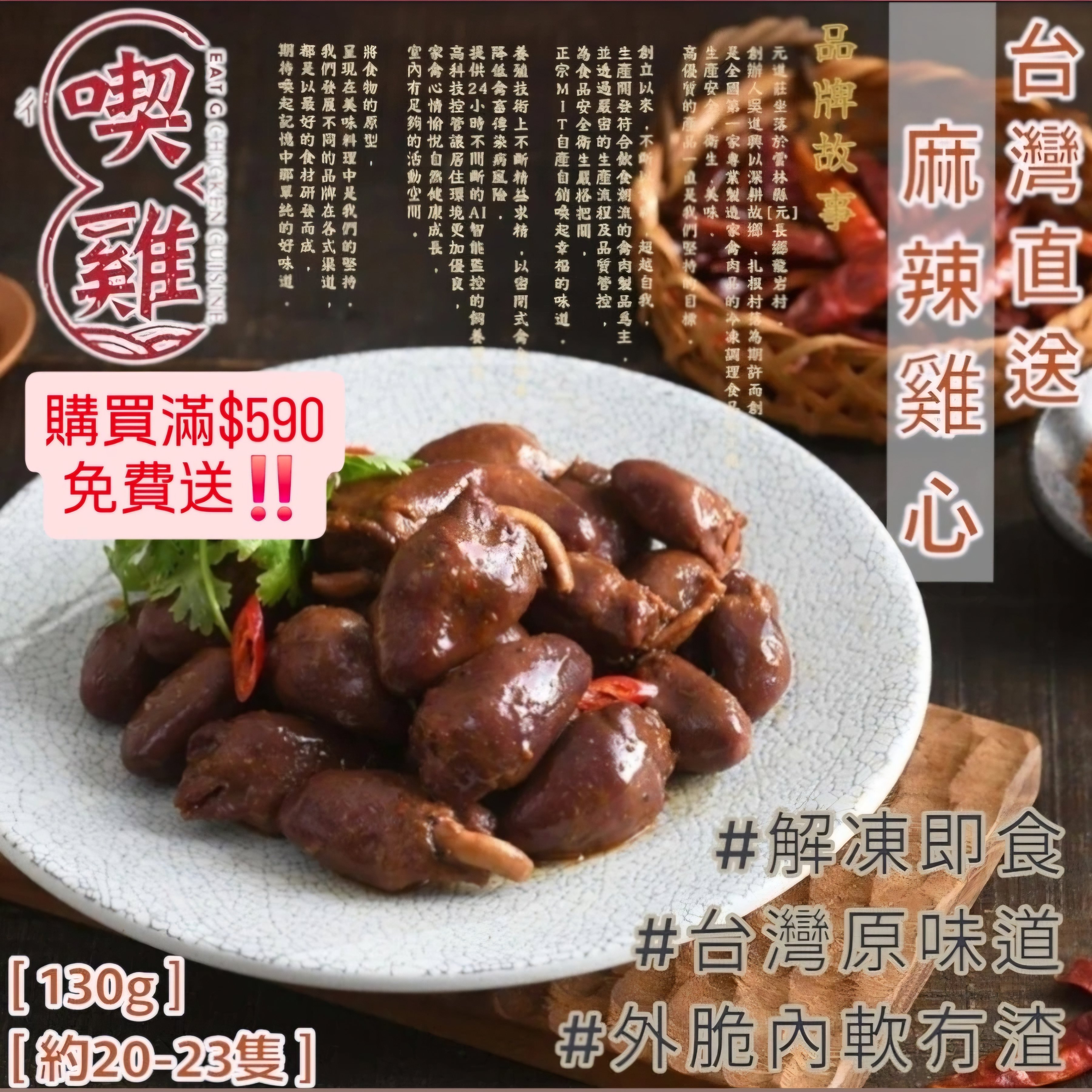 店長繼續送禮🎁購買滿$590即送台灣即食小食1款價值$49起[只限首50單] 送完即止‼️ 贈品🎁👇 台灣。喫雞直送。傳統台式土雞心 [ 麻辣 : 130g]