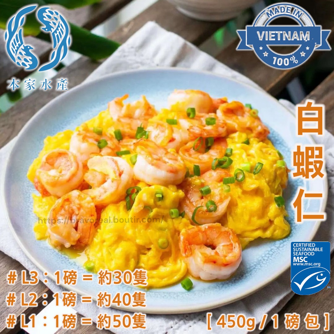 越南 ▪︎ 直送 ▪︎ 白蝦仁 [ 3L / 2L / 1L : 450g : 1 磅/包 ]